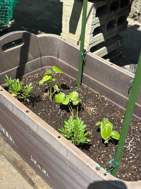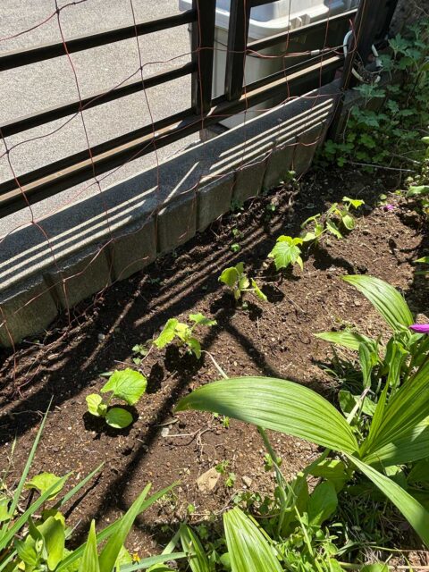 ここは西日がガッツリ当たるエリアだので、何かマルチングをしたほうが良さそうなのだけど、どうしようかと思案中。キュウリは今年は、2期栽培にしようと思っていて、7月になったらまた種を播こうと思っています。