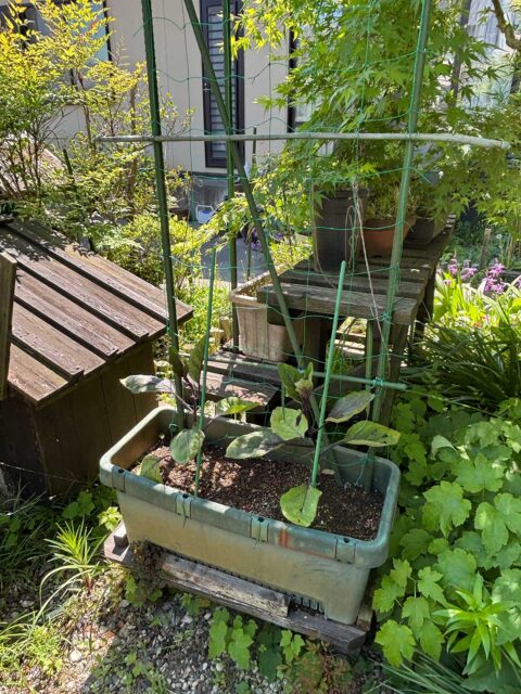 ここは例年ではキュウリを育てている場所ですが、モミジの木の下で、朝日は良く当たるけれど、午後の西日はやわらかい特等席。どうかな、茄子が豊作だったら嬉しいのだけど。