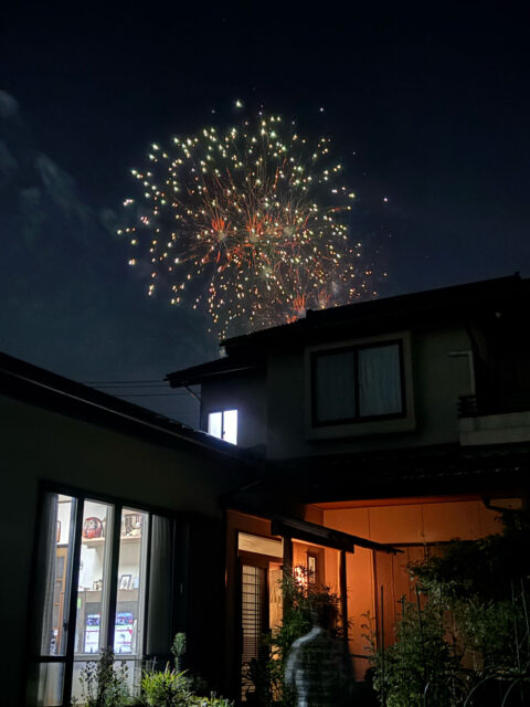 週末の花火だって皆で見ようねって楽しみにしてたから、庭で汗をかきかき楽しみましたよ、ええ。アルコールNGだからシャインマスカットをつまみながら。もちろん耳栓しながら。