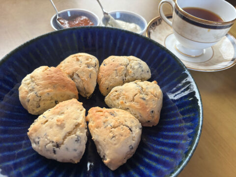 というわけで、最近ごろではもうすっかり家族も紅茶ファンになっちゃいまして、日曜の午後などはこうやって手抜きスコーンを焼いて、でもちゃんとクロテッドクリームとジャムを添えて、そしてリーフで淹れた紅茶を3人で楽しんだりしております。イギリス人か。