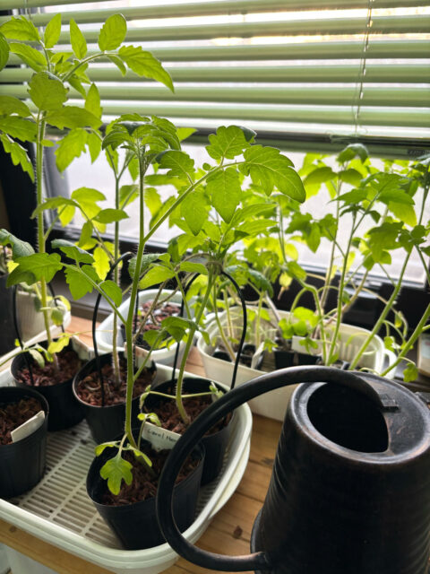 外は一面の銀世界ですが、去年はやくに種を播いたトマト苗は、もうこんなに大きくなりました。